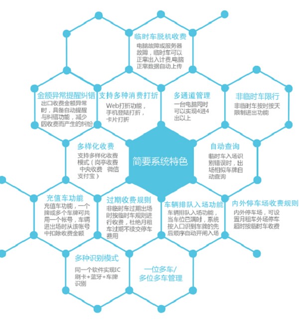 - 车位引导 - 刷卡系统 - 车牌识别 - 道闸